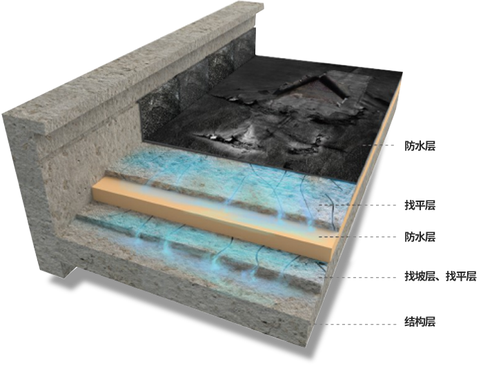 在鋼筋混凝土結(jié)構(gòu)板上直接實施無間隙剛?cè)峤Y(jié)合的基體防水保障系統(tǒng),直接形成對結(jié)構(gòu)樓板的高效防水、防護系統(tǒng),防水可靠度大于98.8%,力求最大程度地消除屋面滲漏水風(fēng)險。