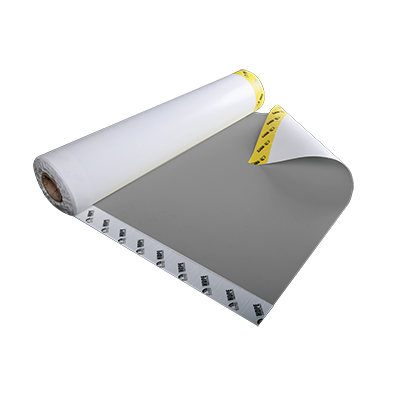 兩幅卷材長向自粘膠膜搭接時,應注意粘接面清潔,搭接后輥壓搭接邊要用力,才能保證良好的粘結(jié)。