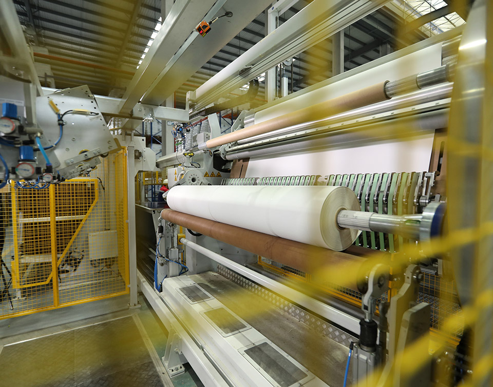 引進美國R&D、意大利Boato等公司改性瀝青防水卷材生產(chǎn)線,引入德國克勞斯瑪菲KraussMaffei高分子防水材料生產(chǎn)設(shè)備,采用德國愛立許、西門子技術(shù),拜耳概念設(shè)計等技術(shù),實現(xiàn)全流程信息化、自動化生產(chǎn),樹立了行業(yè)高產(chǎn)能、高精度、高穩(wěn)定性的標(biāo)桿。